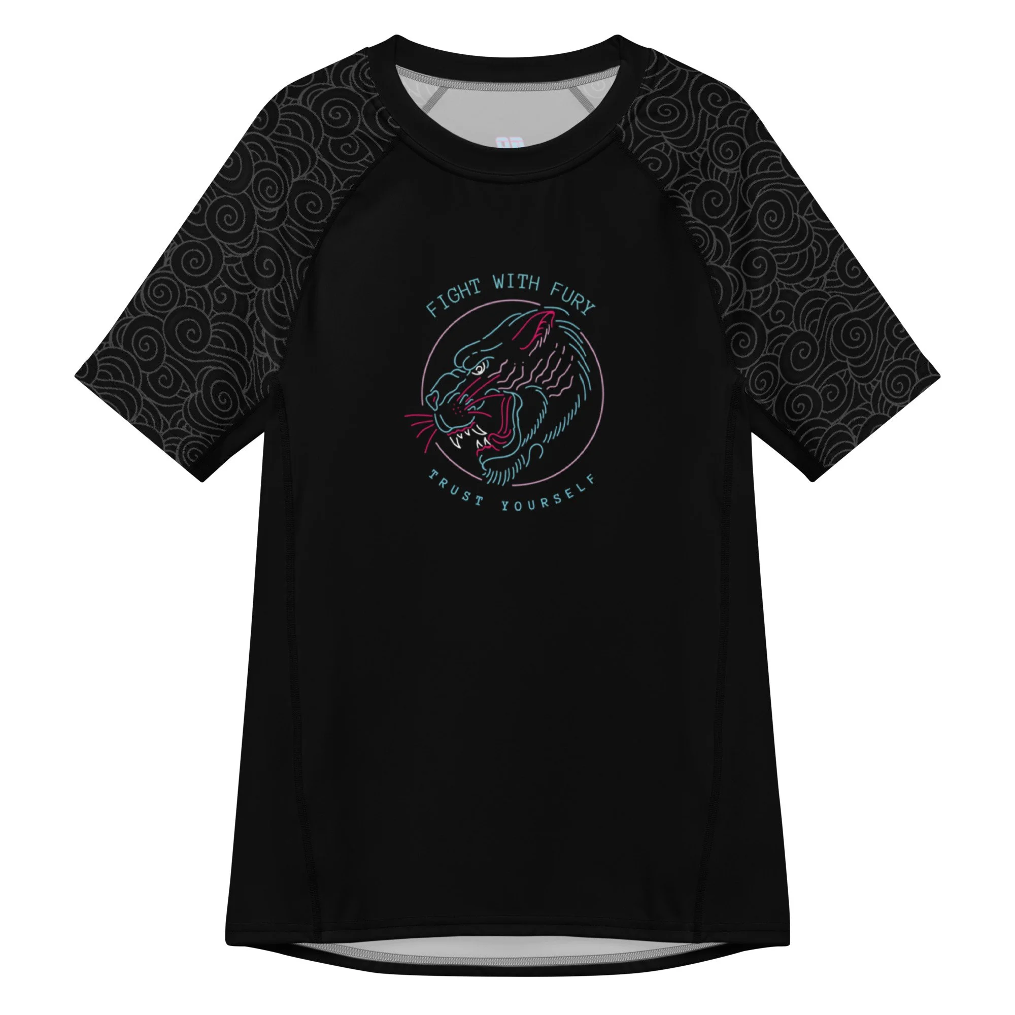 Ready to sweat or surf? This recycled rash guard wicks moisture, stretches comfortably, and looks amazing with its bold prints. Flatlock seams add a stylish edge, making it ideal for workouts, beach vibes, and bike rides.